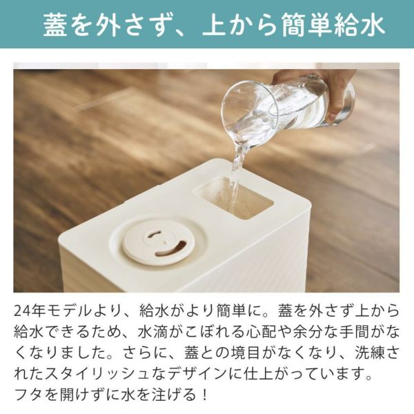 24年モデルより、給水がより簡単に。蓋を外さず上から給水できるため、水滴がこぼれる心配や余分な手間がなくなりました。さらに、蓋との境目がなくなり、洗練されたスタイリッシュなデザインに仕上がっています。