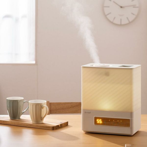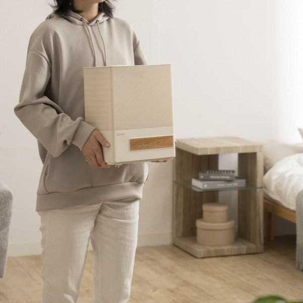 超音波振動板とPTCヒーターを組み合わせたハイブリッド式を採用。本体内部の温められた超微細ミストを噴霧することで、加湿中もお部屋の温度が下がりにくく、快適な室温を保てます。