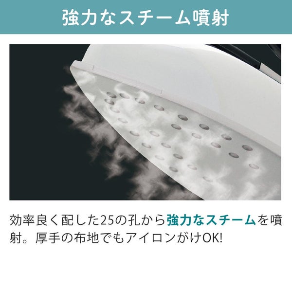 効率良く配した25の孔から強力なスチームを噴射。厚手の布地でもアイロンがけOK!