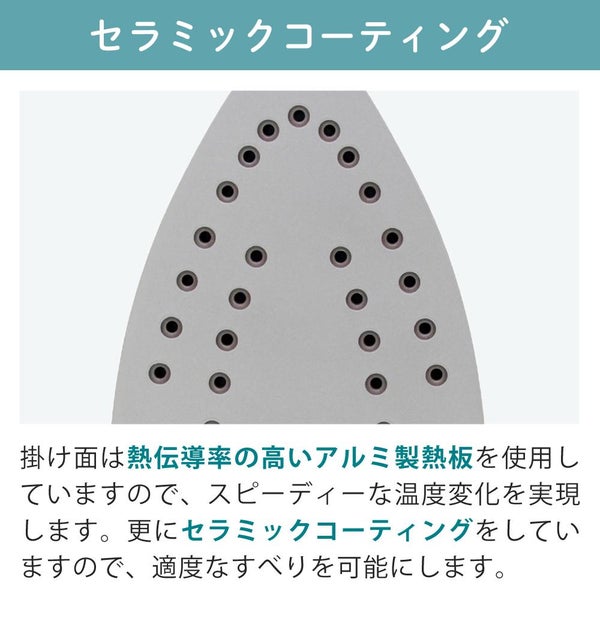 掛け面は熱伝導率の高いアルミ製熱板を使用していますので、スピーディーな温度変化を実現します。更にセラミックコーティングをしていますので、適度なすべりを可能にします。