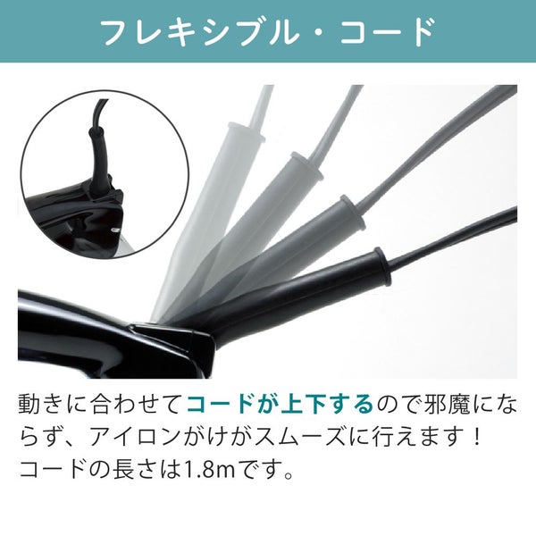 動きに合わせてコードが上下するので邪魔にならず、アイロンがけがスムーズに行えます!