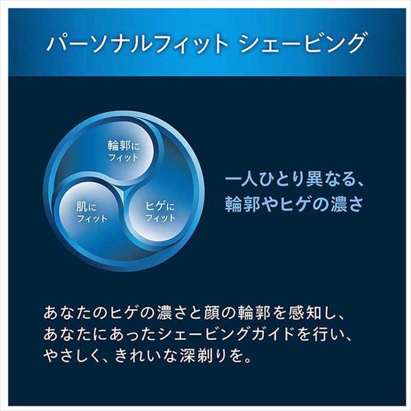 あなたのヒゲの濃さと顔の輪郭を感知し、あなたにあったシェービングガイドを行い、やさしく、きれいな深剃りを実現