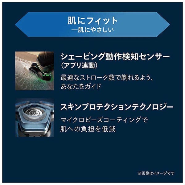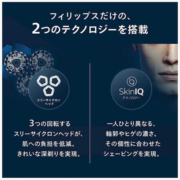 SkinIQ テクノロジー と ヒゲ密度感知 センサーが ヒゲの濃さを判別し、最適な 剃り圧 に 自動調整。
