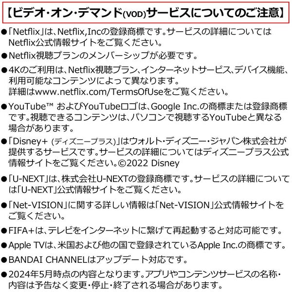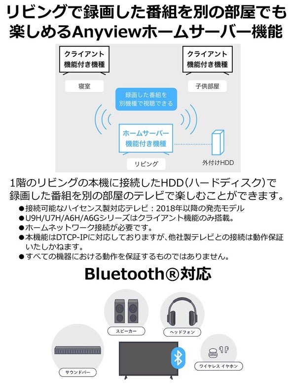 | Bluetooth | イヤホン・サウンドバー対応、対応リモコンあり |