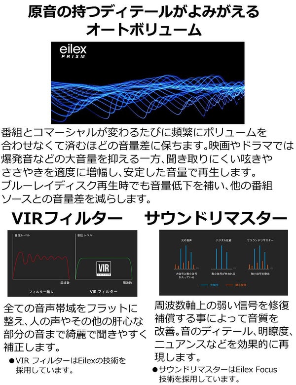 人の声を優先して聞き取りやすく再構築し、映画やドラマで「声」を強調。