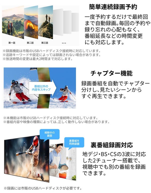 ※録画には市販のUSBハードディスクが必要です。
