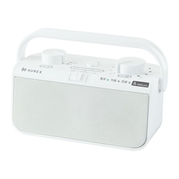 東芝 AUREX AX?WST21(ホワイト)は、 テレビ用 ワイヤレススピーカー として、家中の好きな場所で テレビ音声 を“くっきり”再生できる画期的な製品です。業界初の 子機増設 ブロードキャスト機能 により、リビングとキッチンなど複数場所で同時に音を届けられます(設定も簡単) 「声くっきりモード」で 人の声の強弱 を調整でき、ニュース・ドラマ・音楽等の視聴シーンに応じた音声最適化が可能です。最大出力 4W(2W×2)、Φ52?mm スピーカーユニット、防滴仕様 IPX2 相当でキッチンなど水回りでも安心。充電台と送信機が独立しており、スピーカーをテレビから離して使いながら 手元で充電 できる使い勝手のよさも魅力です。本体質量は約 540g、連続動作時間は約 16時間、充電は約 4時間。光デジタル入力またはステレオミニジャック入力でテレビと簡単接続。