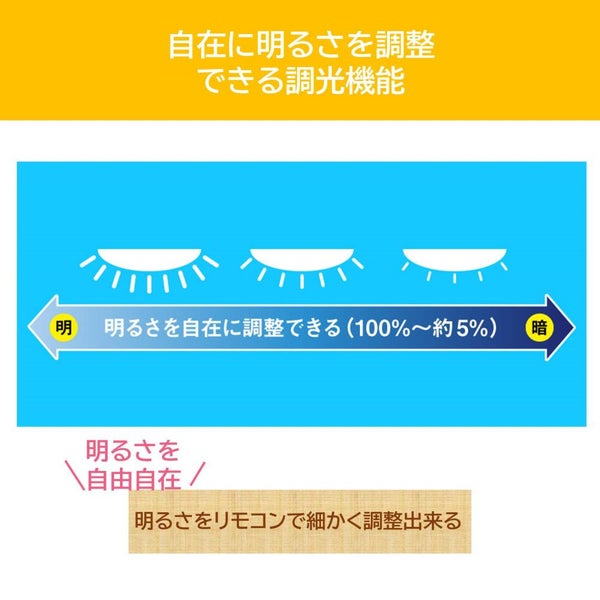 明るさをリモコンで自在に調整(全灯時:100%~約5%)できる調光機能を備えています。