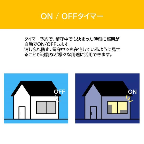 タイマー予約で、留守中でも決まった時刻に照明が自動でON/OFFします。