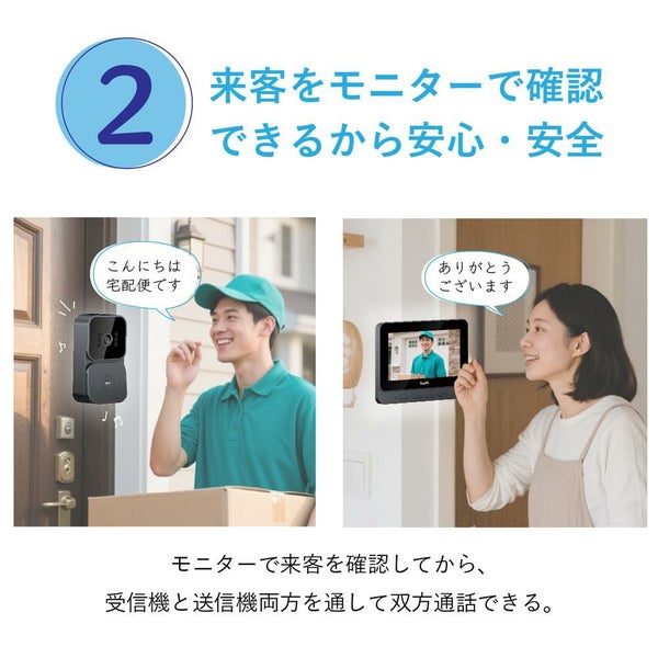 モニターで来客を確認してから、受信機と送信機両方を通して双方向通話できる。
