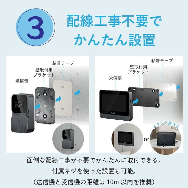 配線工事不要 インターホン サイエルインターナショナル SLI-MH01 ワイヤレスモニターホン ドアホン 防犯 対策 SaiEL