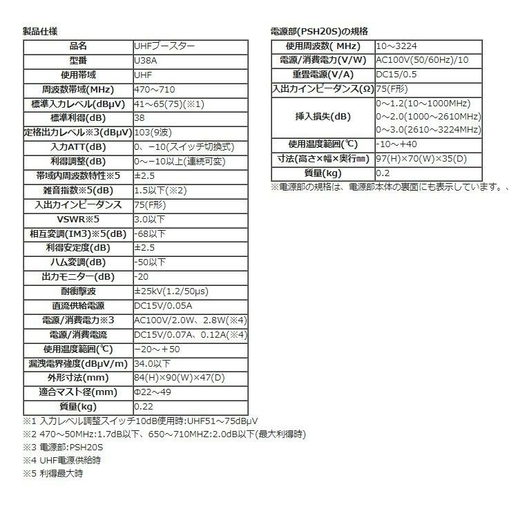 ※2 470~50MHz:1.7dB以下、650~710MHZ:2.0dB以下(最大利得時)