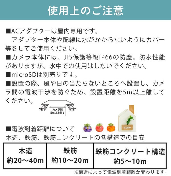 ※遠隔確認・録画映像の確認にはカメラ設置場所と外出先の両方にインターネット接続環境が必要です。
