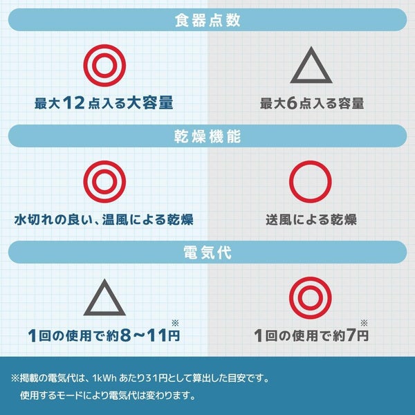 | 庫内の有効使用スペース(食器カゴ基準) | 幅220×高さ205×奥行205(mm)(トレイを設置する場合) 幅220×高さ245×奥行205(mm)(トレイを設置しない場合) |