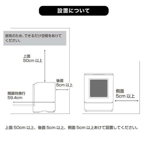 ※上面50cm以上、後面5cm以上、側面5cm以上あけて設置してください。