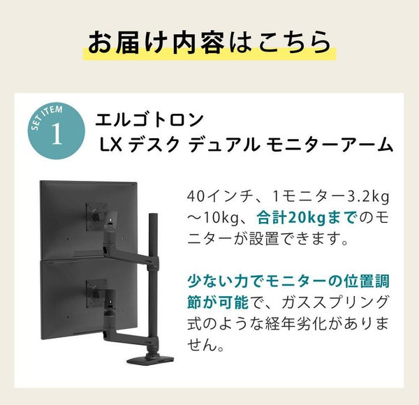 | 製品詳細 | LX デュアルモニターアーム 縦/横型 長身ポール |
