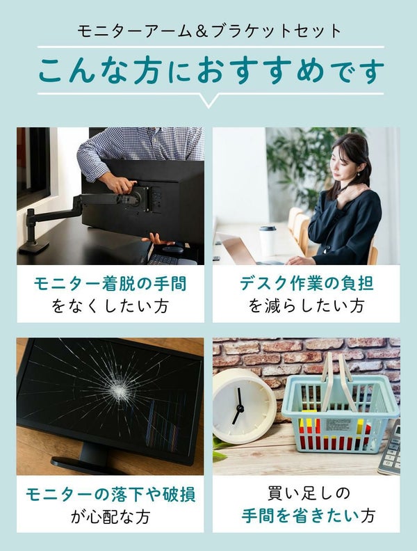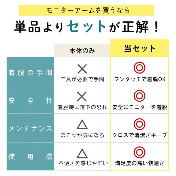 ・製品は必ずアームとモニターにそれぞれに取り付けた状態で組み合わせてください。