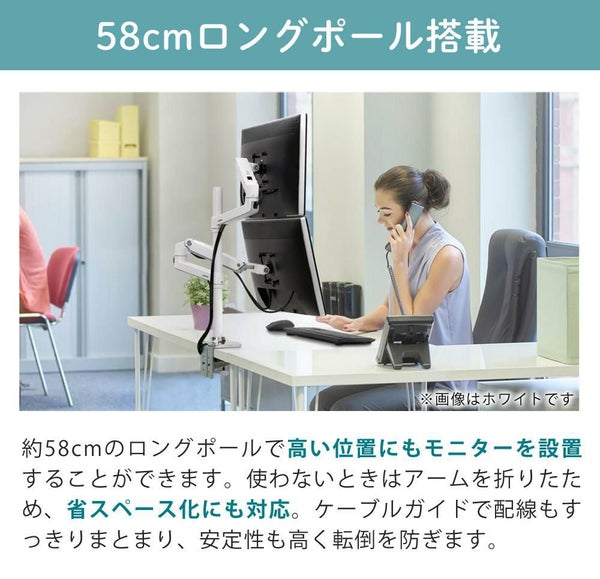 約58cmのロングポールにより、モニターをさらに高い位置に設置できます。