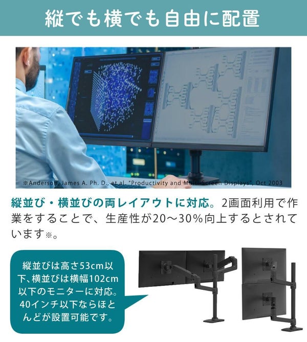 LX デスク デュアル モニターアーム 縦/横型 ロングポールは、