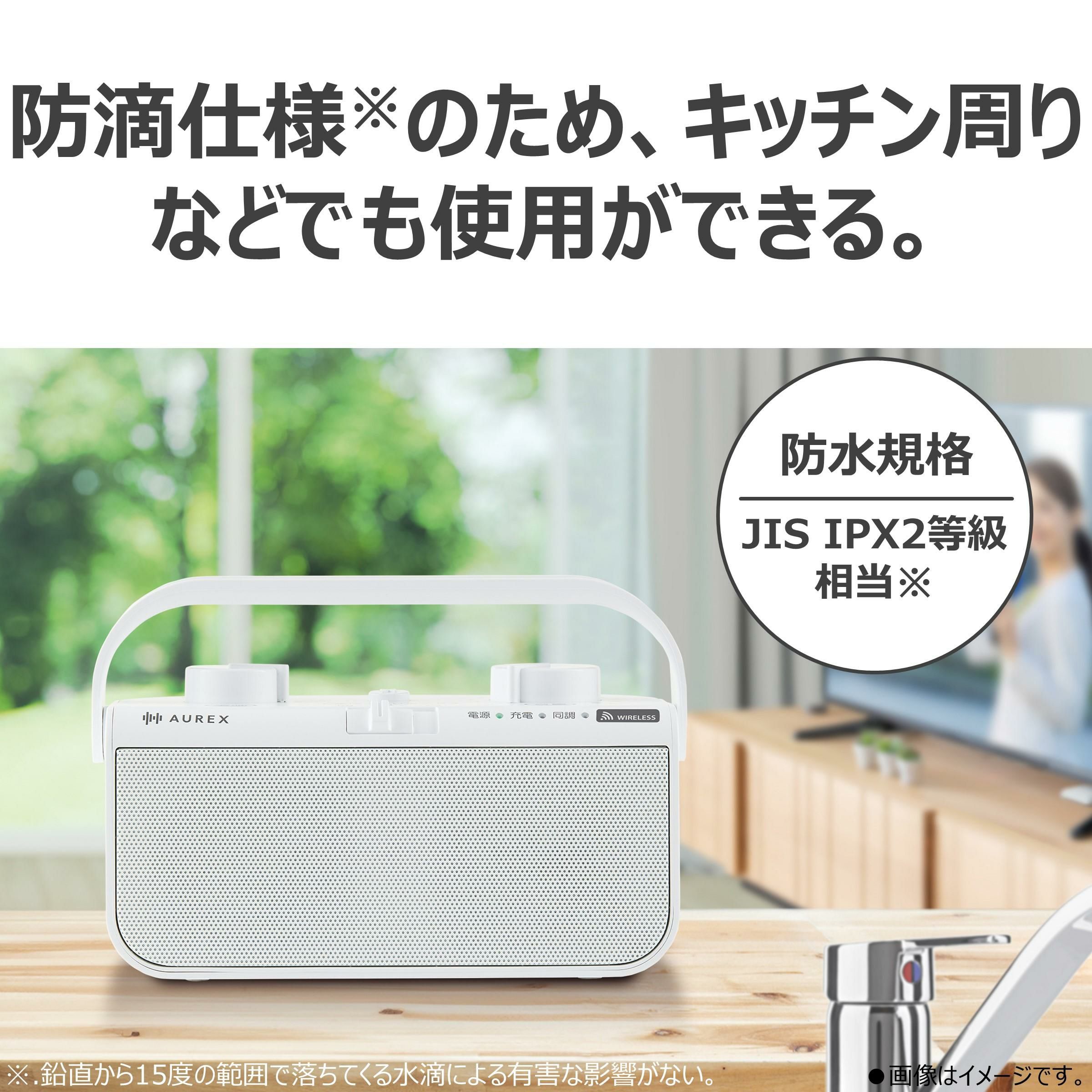 JIS IPX2(防水に関する保護等級)相当の防水性能があるため、キッチンまわりなどでもテレビの音声を楽しむ事が出来ます。