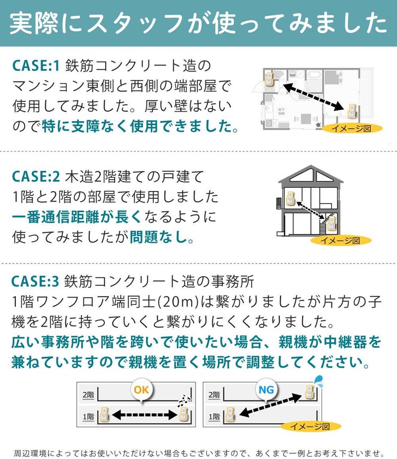・別の階や別の建物の間で使用する場合