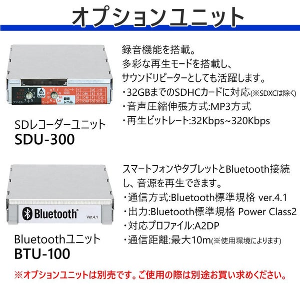 下部スロットには、ワイヤレスチューナーのほか、SDレコーダーやBluetoothユニットも搭載可能です。