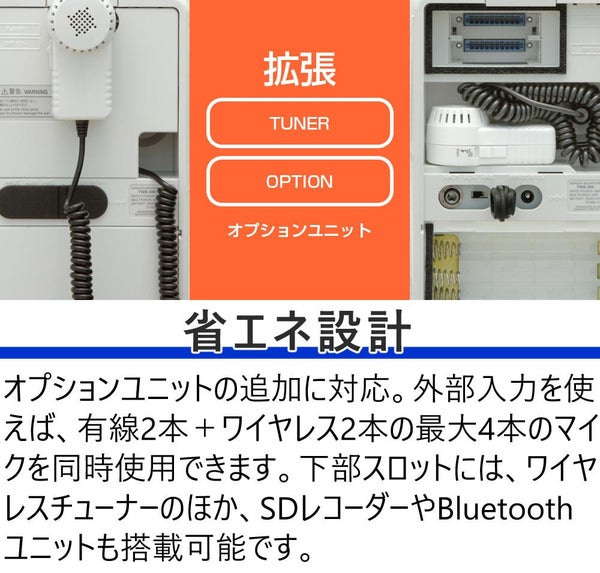 下部スロットには、ワイヤレスチューナーのほか、SDレコーダーやBluetoothユニットも搭載可能です。