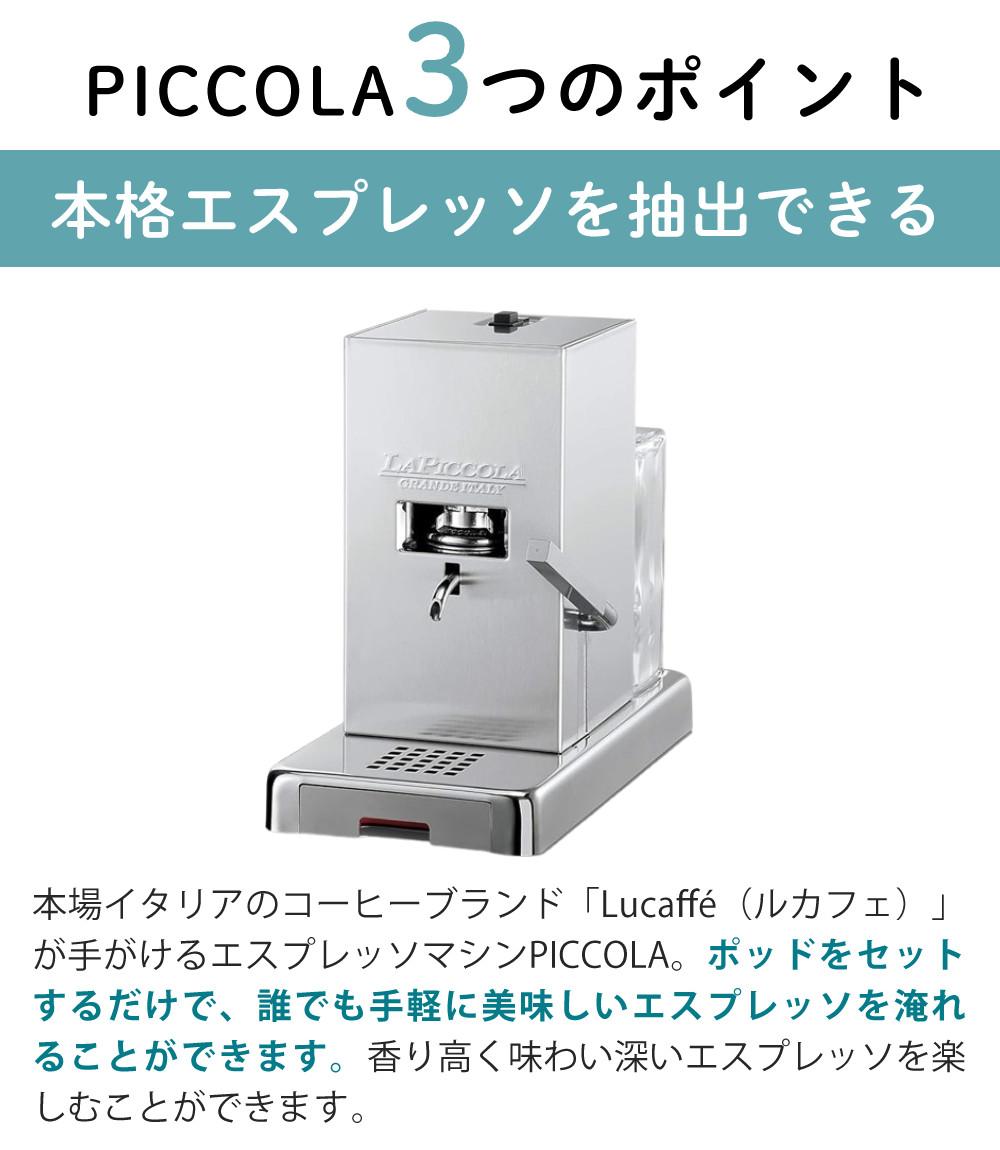 他の画像を見る 家庭用 カフェ 本格 エスプレッソマシンセット Lucaffe ルカフェ Lucaffe エスプレッソマシン PICCOLA シルバー 家庭用 カフェ 本格 コーヒーポット4種 ふきん付 6点セット 販売価格 ¥ 19,800 税込 カートに入れる お気に入りに登録する (0件)