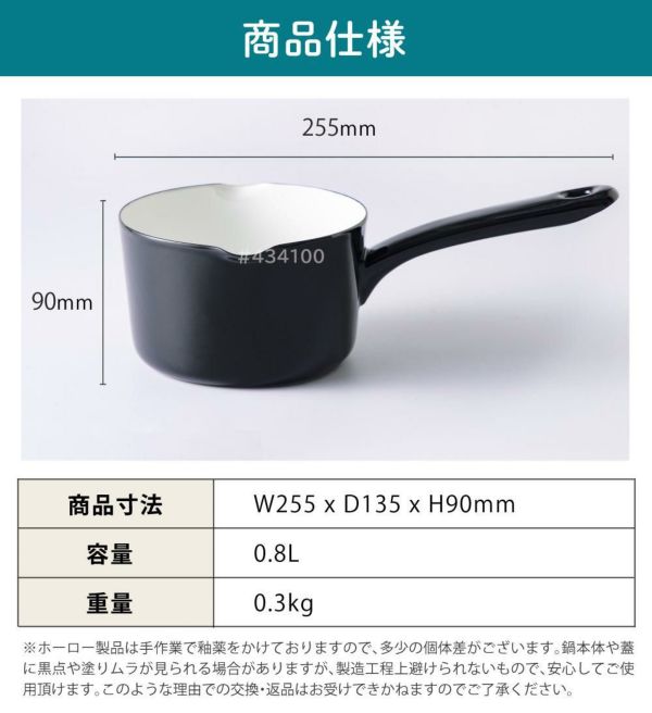 ※ホーロー製品は手作業で釉薬をかけておりますので、多少の個体差がございます。鍋本体や蓋に黒点や塗りムラが見られる場合がありますが、製造工程上避けられないもので、安心してご使用頂けます。このような理由での交換・返品はお受けできかねますのでご了承ください。