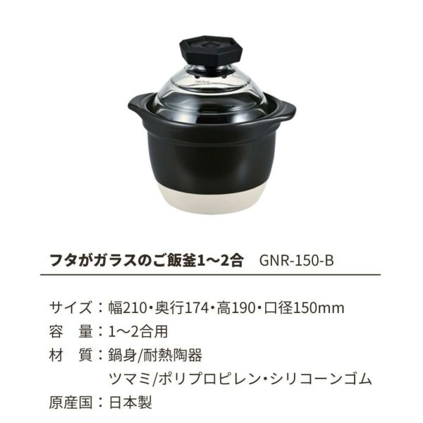 ご飯が炊ける様子が見える!耐熱ガラス製フタのご飯釜 HARIO フタがガラスのご飯釜1~2合 GNR-150-B-W