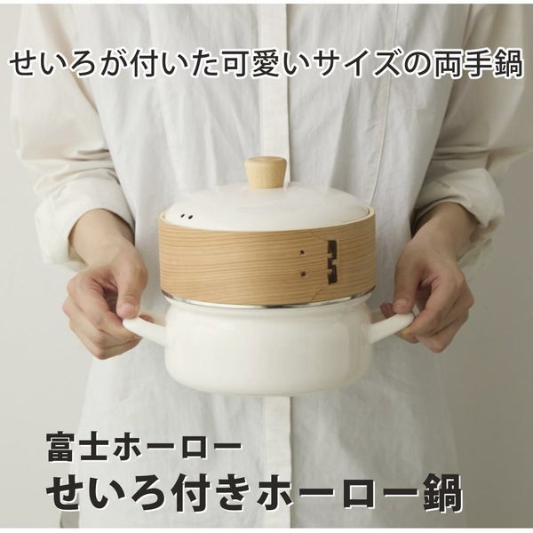 【レビュー特典あり】 富士ホーロー 正規品 せいろ付きホーロー鍋 (ガス火・IH対応)18cm SER-18W 両手鍋 ほうろう 琺瑯 せいろ蒸し(ラッピング不可)
