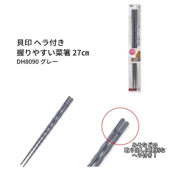 ・貝印 握りやすい菜箸 27cm ヘラ付き グレー DH8090 ×1