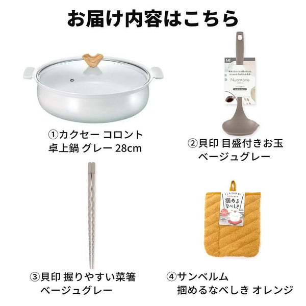 卓上鍋 コロント 28cm&お玉&菜箸&鍋敷き 4点セット