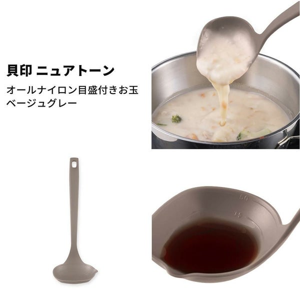 ・貝印 ニュアトーン オールナイロン 目盛付きお玉 ベージュグレー DE6329 ×1