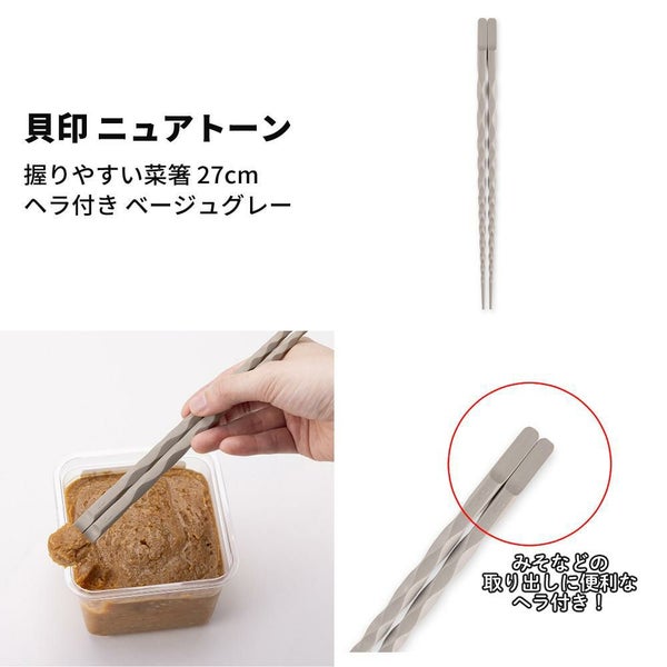 ・貝印 握りやすい菜箸 27cm ヘラ付き ベージュグレー DH6307 ×1