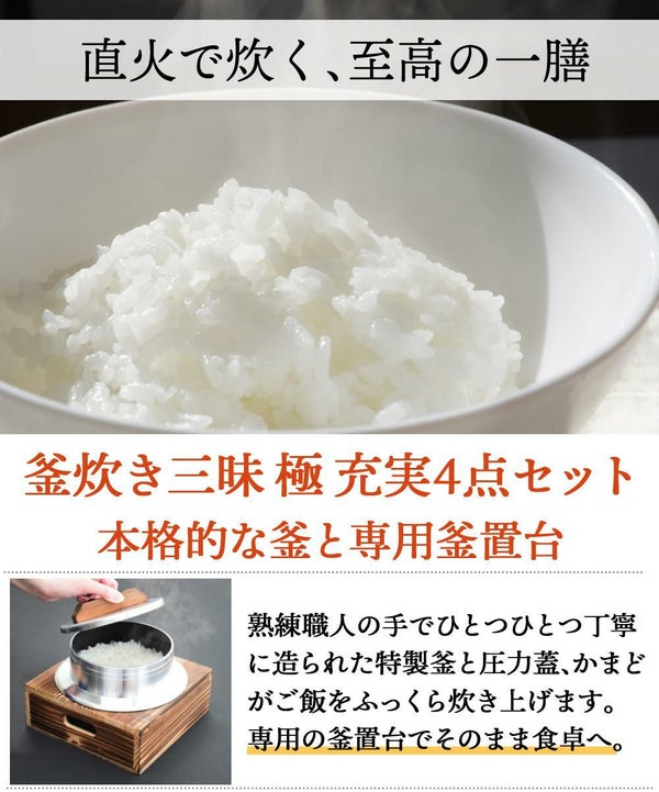 ご家庭のガスコンロで簡単に美味しくご飯が炊ける、本格的な釜のセットです。
