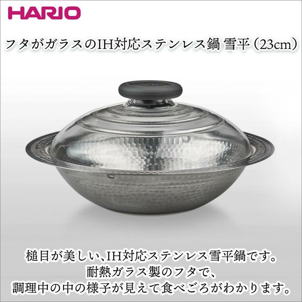 ハリオ MIS-23 フタがガラスのIH対応ステンレス鍋 雪平 23cm