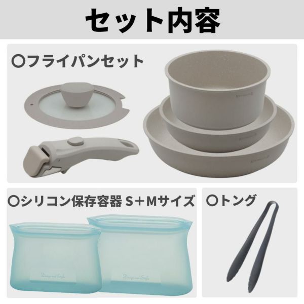1)取っ手が外せるフライパン・鍋5点セット