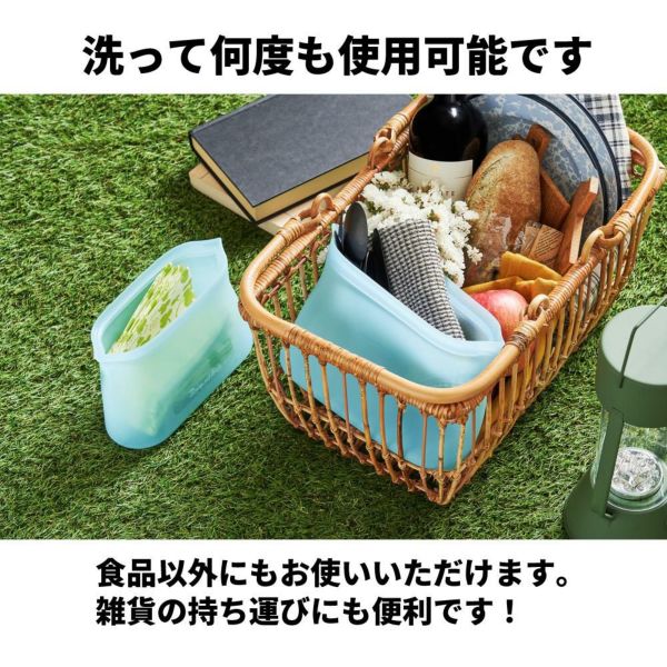 食品保存から小物整理まで幅広く使える耐熱シリコン製バッグです。