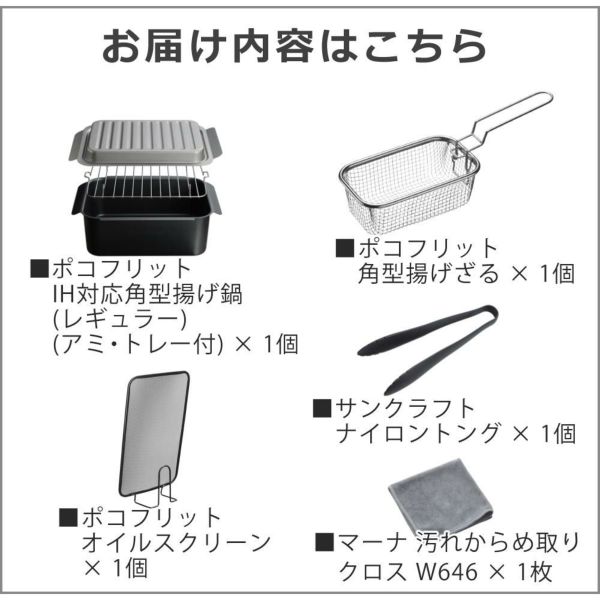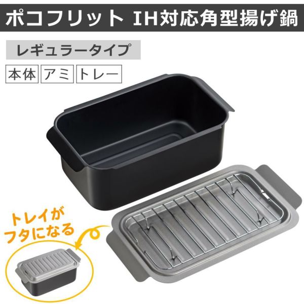 1) ポコフリット IH対応角型揚げ鍋 レギュラー (本体・アミ・トレー) RB-2700