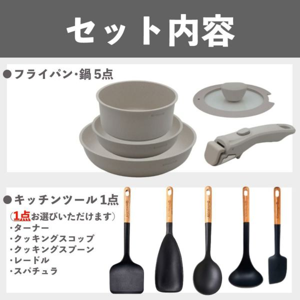 セット内容 | フライパン20cm・フライパン26cm・鍋18cm・専用フタ18cm・ハンドル |