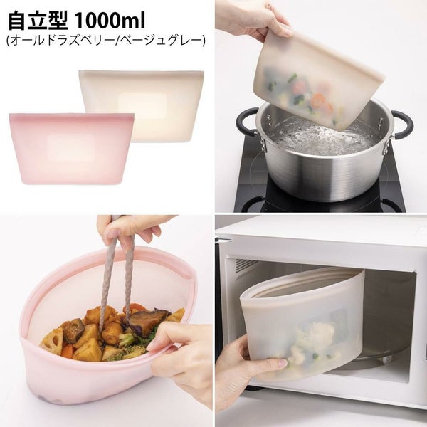 シリコーン保存バッグ 自立型 1000ml ベージュグレー ×1