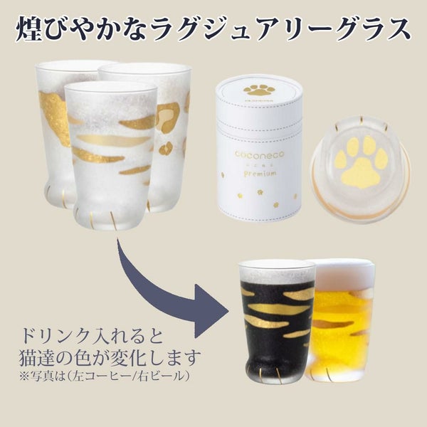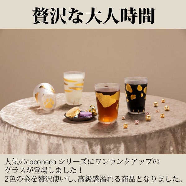 アイスコーヒーや黒ビールなど重厚感のある色を注ぐと、より一層金が際立ち、おすすめです。