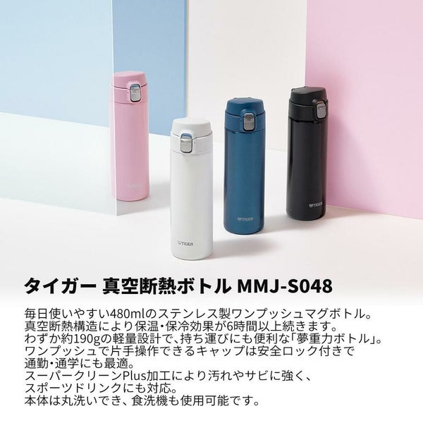 タイガー 真空断熱ボトル MMJ-S048 0.48L (パールブルー/パールブラック/パールピンク/パールホワイト)