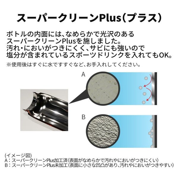 ボトルの内面には、なめらかで光沢のあるスーパークリーンPlusを施しました。