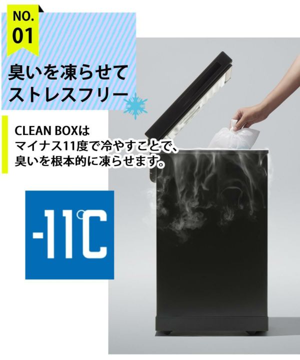 CLEAN BOXはマイナス11度で冷やすことで、臭いを根本的に凍らせます。