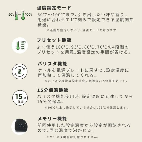 細口ノズルとハンドルの絶妙なバランス、細かな温度調節とこだわりの「バリスタ機能」で、