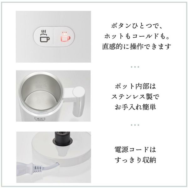 ホット&コールドの、きめ細かいミルクフォームが簡単に作れるミルクフォーマーです。