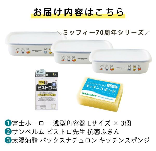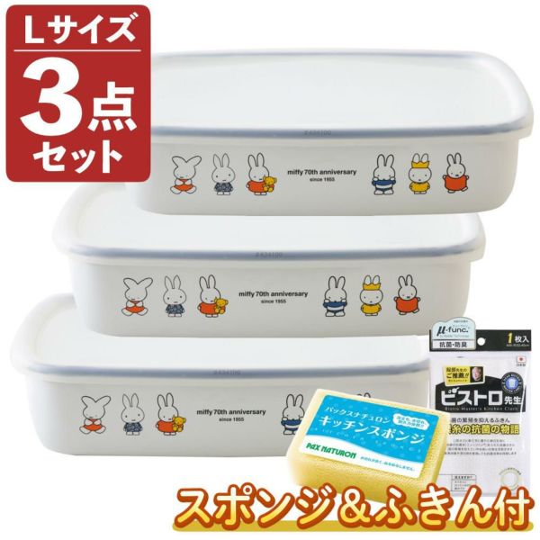 | 1)富士ホーロー ミッフィー70周年 浅型角容器 キャニスター Lサイズ MF70-L × 3個
