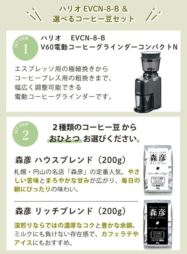 | 1)ハリオ V60 電動コーヒーグラインダーコンパクトN EVCN-8-B |